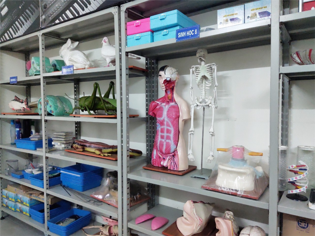 - Máy chiếu, máy tính, máy soi vật thể các phòng chức năng: Lý, Hóa, Sinh, đa năng hoạt động ổn định.