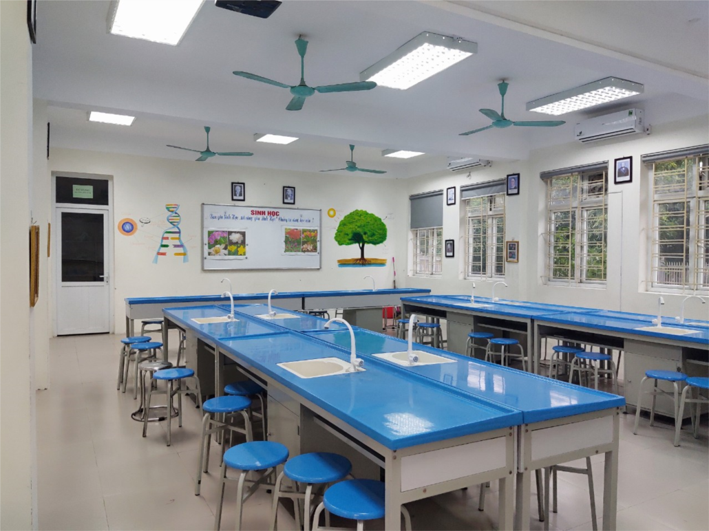 - Máy chiếu, máy tính, máy soi vật thể các phòng chức năng: Lý, Hóa, Sinh, đa năng hoạt động ổn định.