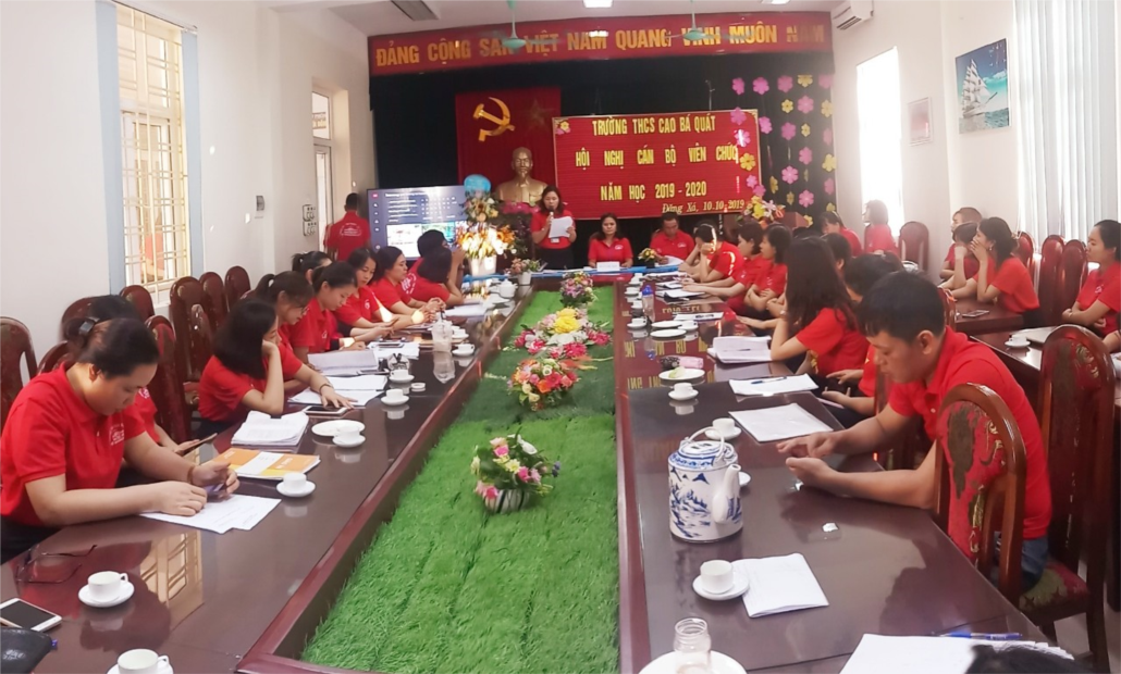 Sau những bài tham luận có ý nghĩa như vậy, đồng chí Vũ Thị Lan Anh đã phát động thi đua năm học 2019 - 2020 và Kí giao ước thi đua giữa Ban Giám hiệu và Công đoàn