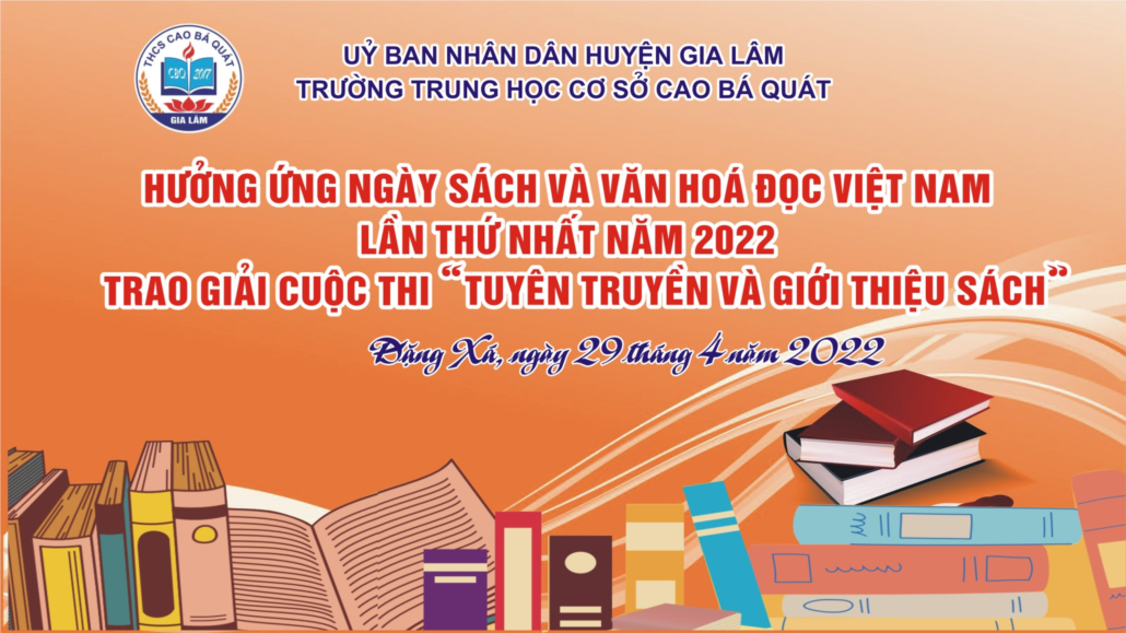 Ngày 29/04/2022 THCS Cao Bá Quát tổ chức hưởng ứng ngày sách và văn hóa đọc việt nam lần thứ nhất, trao giải cuộc thi Tuyên truyền, giới thiệu sách năm 2022 với tinh thần đề cao sách báo và tri thức trong đời sống, để văn hóa đọc trở thành một nét sinh hoạt văn hóa đẹp, trở thành nhu cầu không thể thiếu trong thời đại ngày nay.