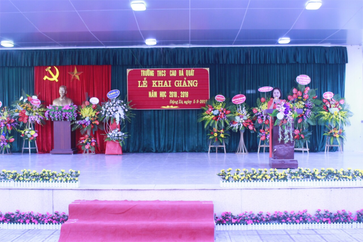 Chỉ tổ chức trong 2 tiết học nhưng buổi lễ khai trường của Trường THCS Cao Bá Quát diễn ra thật long trọng, trang nghiêm, đầy ý nghĩa, mang đến không khí hân hoan, náo nức cho thầy và trò bước vào một năm học mới. Buổi lễ khai trường đã thành công tốt đẹp.