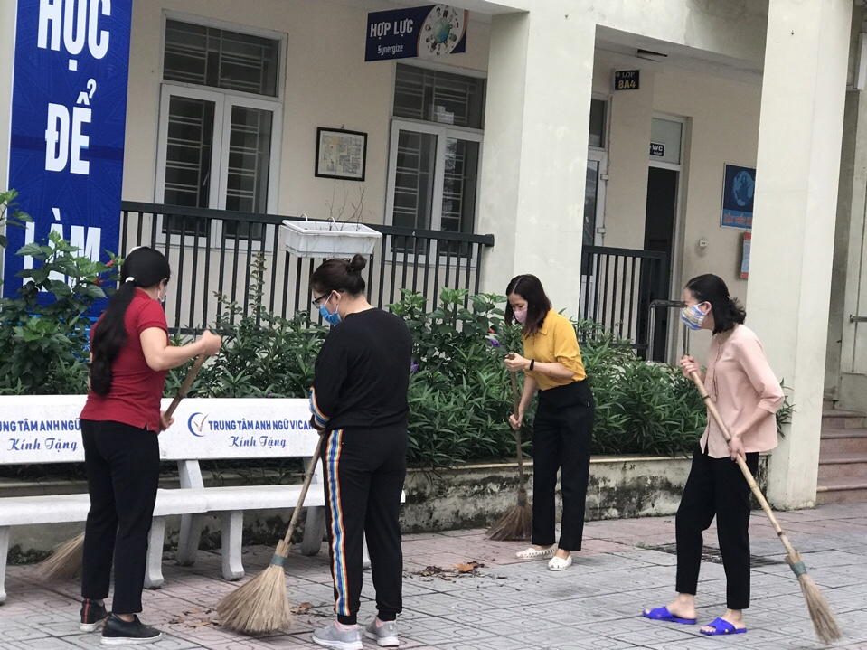 Các thành viên của tổ tự nhiên và nhân viên trong nhà trường đều có mặt để lao động, vệ sinh khung cảnh sư phạm, chăm sóc các công trình măng non giúp các con học sinh khi các con nghỉ học để phòng dịch. Sau đây là 1 số hình ảnh tổng vệ sinh và phun thuốc diệt khuẩn của trường: