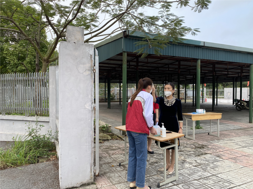 Trường THCS Cao Bá Quát diễn tập tình huống 1 trong Kế hoạch Tổ chức diễn tập đón học sinh trở lại trường học sau thời gian tạm dừng để phòng, chống dịch bệnh Covid - 19. Tình huống: Hướng dẫn phân luồng giao thông khi học sinh tới trường. Hướng dẫn học sinh vào trường, vào lớp học đảm bảo công tác phòng chống dịch.