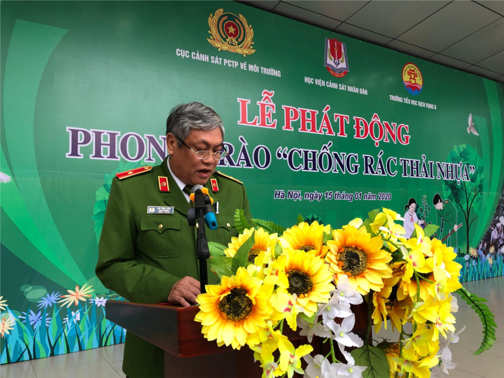 Phát biểu phát động phong trào, Thiếu tướng Lê Tấn Tảo- Cục trưởng Cục cảnh sát phòng, chống tội phạm về môi trường (Bộ Công an) đã nhắc lại sự kiện xác một con cá nhà táng trôi dạt vào bờ biển Italia hồi tháng 5/2019 và trong bụng con cá có chứa đầy những rác thải nhựa, để nêu cảnh báo về mối nguy hại của rác thải nhựa đến môi trường sống của con người và hàng triệu các loài sinh vật khác. “Rác thải nhựa đang là thách thức của cả thế giới bởi sự ảnh hưởng nghiêm trọng và lâu dài của nó. Ở Việt Nam, mỗi ngày ước tính có khoảng 80.000 tấn rác thải nhựa được đưa ra môi trường và chúng phải mất hàng nghìn năm để phân hủy hết.” –Thiếu tướng Lê Tấn Tảo nhấn mạnh.