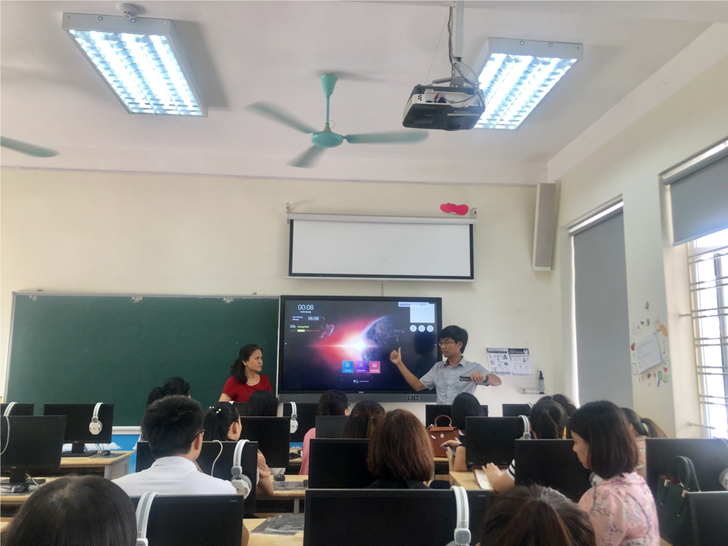 Nhận thức rõ vai trò, tầm quan trọng và hiệu quả của ứng dụng CNTT trong dạy học, được sự quan tâm chỉ đạo của BGH nhà trường, ngày 27/8 nhà trường đã tổ chức buổi tập huấn kĩ năng sử dụng bảng tương tác thông minh nhằm trang bị cho GV những kiến thức về công nghệ thông tin cơ bản, biết ứng dụng vào công việc hàng ngày đạt hiệu quả cao hơn, nhanh nhạy hơn và đáp ứng được yêu cầu dạy – học thời kì công nghệ 4.0.