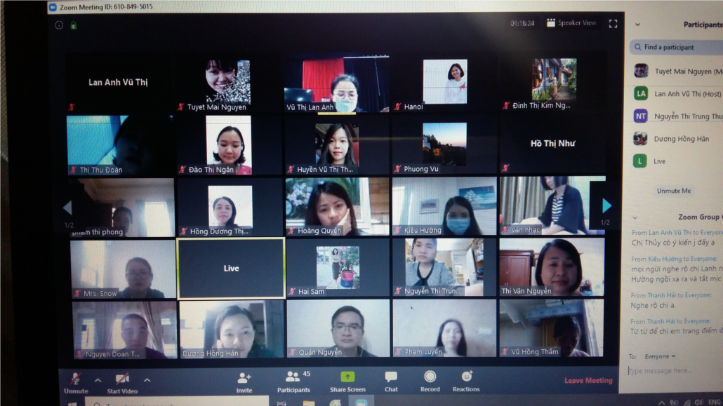 Cuộc họp diễn ra đúng 9.00 cùng ngày với sự tham gia đầy đủ của 100% cán bộ, giáo viên, nhân viên nhà trường. Do BGH nhà trường đã triển khai hướng dẫn sử dụng phần mềm Zoom rất chi tiết, cụ thể nên ngoài các đ/c Giáo viên, các đ/c nhân viên nhà trường cũng đã sử dụng thành thạo phần mềm Zoom để tham gia các cuộc họp trực tuyến của tổ, nhóm và các cuộc họp hội đồng sư phạm.
