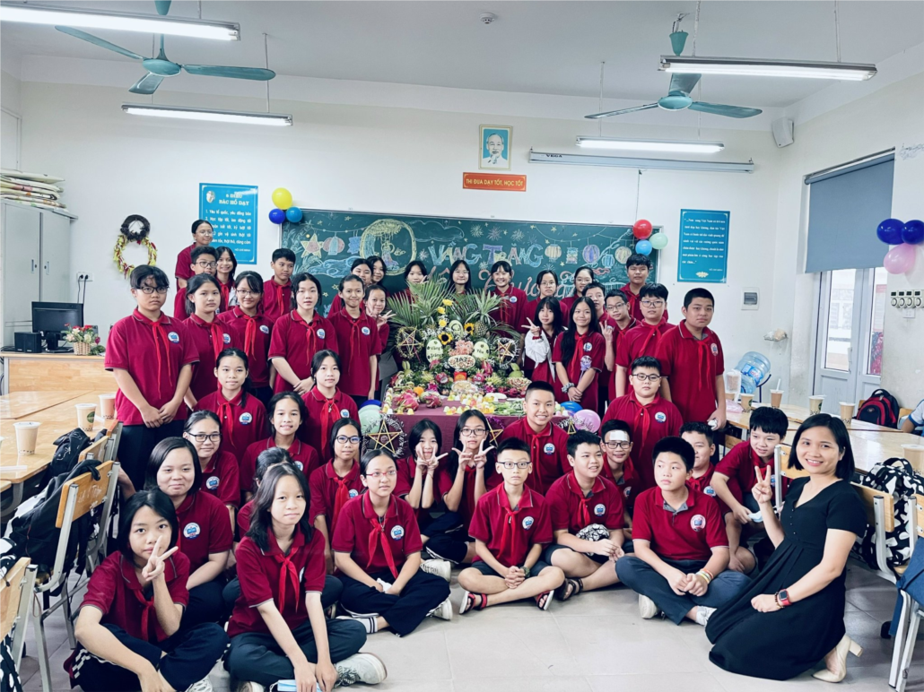 Từ ngàn xưa , người Việt Nam mỗi lần đến Tết trung thu , ông bà , cha mẹ lại gửi gắm rất nhiều tình cảm và nỗi niềm vào mâm cỗ để con trẻ được phá cỗ trông trăng.Ngày nay cũng vậy , với những sản vật bình dị, dân dã như trái bưởi dưới bàn tay khéo léo của các bác phụ huynh và các bạn lớp 7A2 đã làm thành một chú chó xinh xắn hay quả dưa hấu được cắt tỉa thành một bình hoa rất đẹp và hình ảnh bác hồ trên quả dưa luôn nhắc nhở chúng con thực hiện đúng 5 điều Bác Hồ dạy. Màu xanh hi vọng của những con nhím xinh đẹp, màu đỏ may mắn của những trái thanh long, những quả dứa thơm phức mùi hạnh phúc, với bao con mắt mang bao nhiêu điều kì lạ và thú vị về cho tuổi thơ chúng con. Với chiếc bảng trang trí mang tên đúng chủ đề “ vầng trăng yêu thương” chúng con mong muốn mang tới thông điệp yêu thương đong đầy đó cho cả năm học và cả các năm ngồi trên ghế nhà trường.