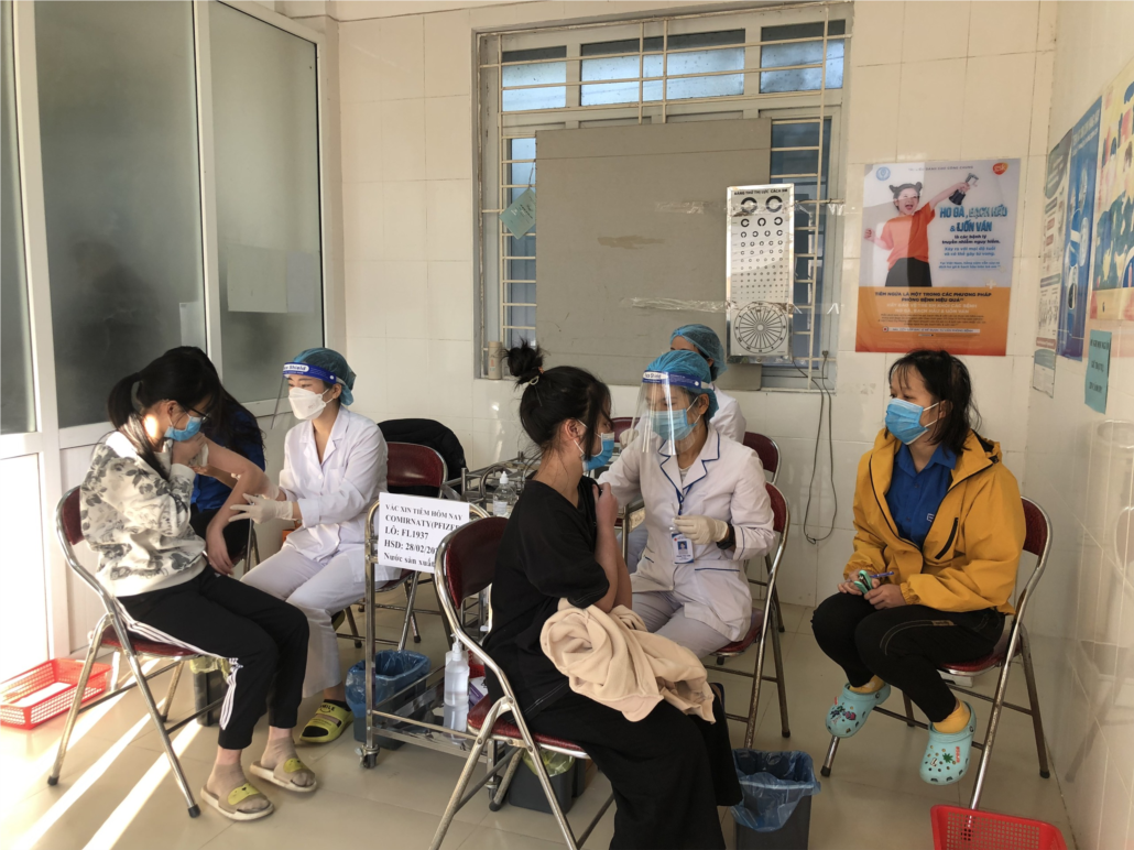 Nhà trường đã phân công nhiệm vụ cho CB - GV - NV hỗ trợ tại điểm tiêm, chuẩn bị trang thiết bị, phiếu đăng kí tiêm chủng và cơ sở vật chất, phân luồng, bố trí các phòng chờ, sẵn sàng, đảm bảo kế hoạch tiêm diễn ra an toàn, hiệu quả. Các lớp được bố trí chia ca cụ thể với từng khung giờ khác nhau để đảm bảo công tác tiêm chủng thuận lợi, đảm bảo giãn cách, tránh tụ tập đông người theo quy định của Bộ Y tế.